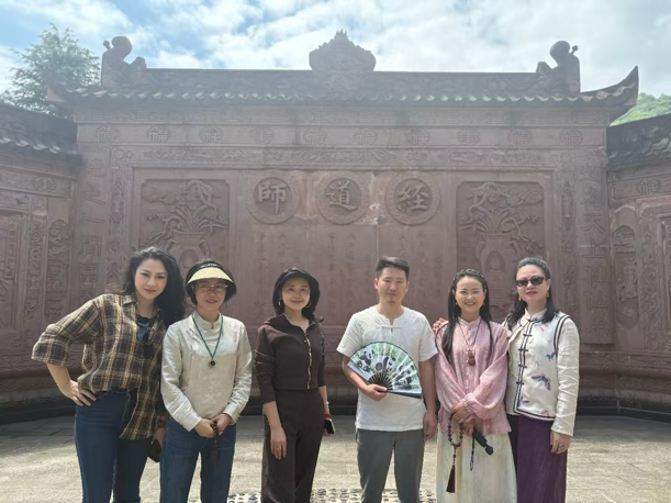 (2026年4月15日)继谨研香舍温江工作室圆满开业之后,4月15日,由成都锦妍文化传播有限公司创始人胡锦妍、贵州丁氏观舌非遗传承中心主任丁翎议带队,全国各地同修一行登临青城山,开展“问道青城山、禅心悟大道”文化研学活动。以山为境、以道为脉、以香为媒,将香道文化、中医养生、道家智慧融为一体,开启一场身心同修的文化问道之旅。